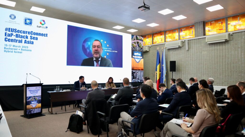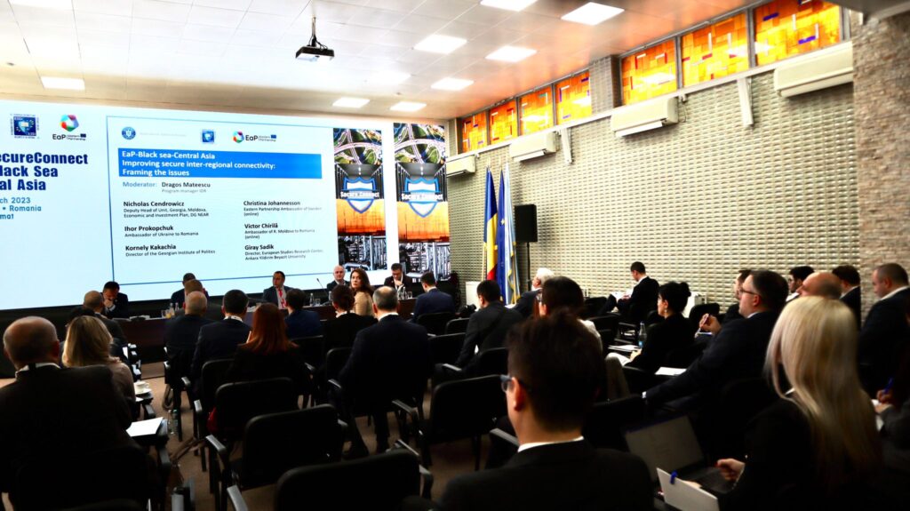 Secretary of State – Traian Hristea, EEAS official – Luc Devigne and IDR general director – Liliana Popescu-Bîrlan held the opening remarks. The first panel was moderated by Dragoș Mateescu – DEF Director. The event was conducted in a hybrid format, bringing together experts and officials from Central and Eastern Europe, as well as the Central Asian area. The event lasted 3 days, and its main theme was the regional approach (Black Sea – Central Asia) of secure interconnectivity and infrastructure resilience within the Eastern Partnership.