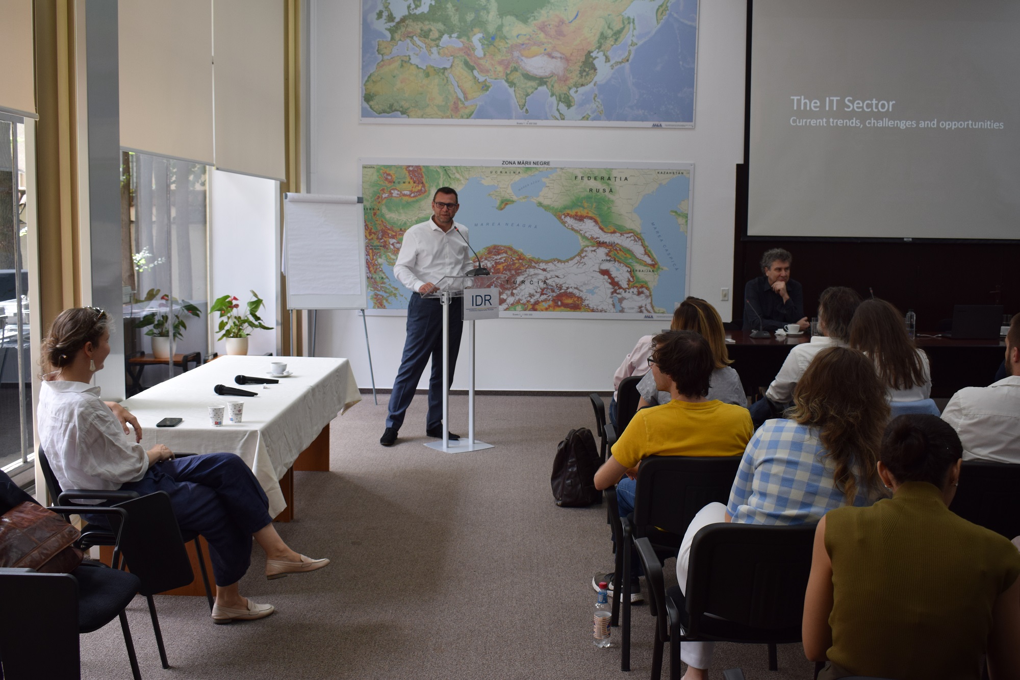 As a representative of civil society and the private sector, Mr. Matei focused on current trends, challenges, and opportunities in the IT sector, both at a global level and on a Romanian level. Mihai Matei talked about disruptions created by artificial intelligence and machine learning, the lack of education in IT skills and disagreements the between the US, EU, and EU member-states on policies regarding technology. Also mentioned were opportunities, such as the digitalization of public services and health systems.