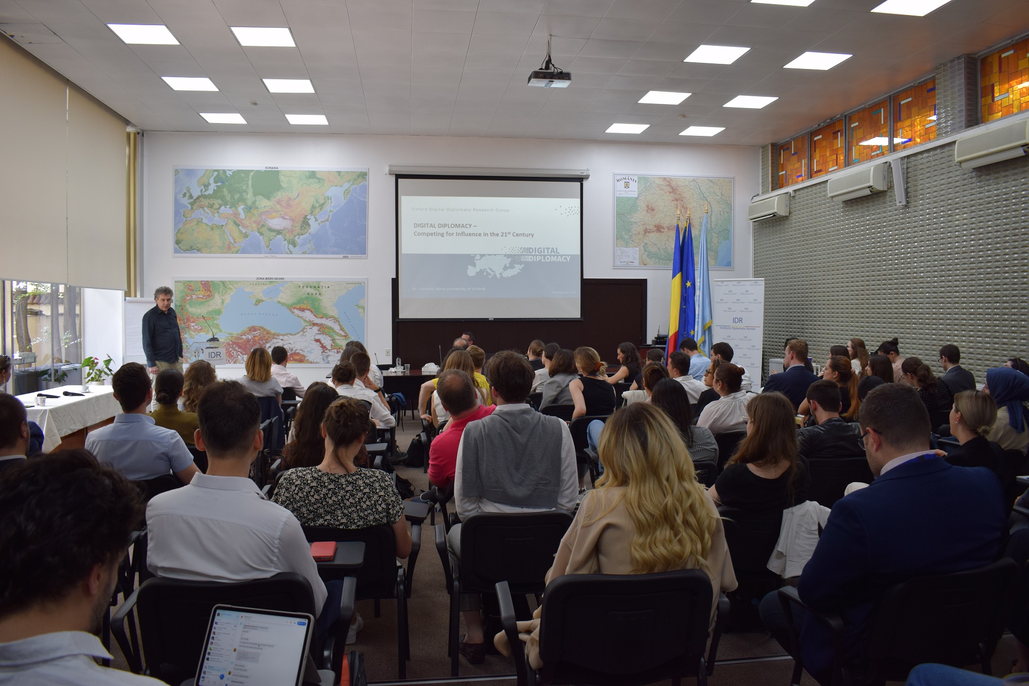 On the 16th of June, the international roundtable „The Digital and the Diplomacy: Contemporary Trends, Challenges and Opportunities for Digital Diplomacy, Global Digital Cooperation & the IT Sector” took place. The roundtable was organised by the Faculty of Political Science of the University of Bucharest and the Romanian Diplomatic Institute. The event, hosted by the IDR at the Dimitrie Cantemir Hall, is part of the Erasmus+ project „Digital Diplomacy: Building the Common Future with Technology”.