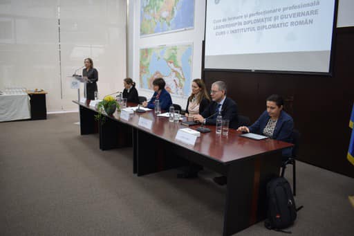 At the inauguration of the new training program – “Leadership” in Diplomacy and Governance – were present, among the trainees, Secretaries of State (including Cristina Nedelcu, Ministry of Culture; Andrei Novac, Ministry of Foreign Affairs; Mihai Macaveiu, Ministry of Economy; Daniel Surdu, Ministry of Development, Public Works and Administration), Secretaries General, Deputy Secretaries General, Directors General, Directors. The actual preparation will take place at the RDI headquarters from 26th April to 28th June 2023.