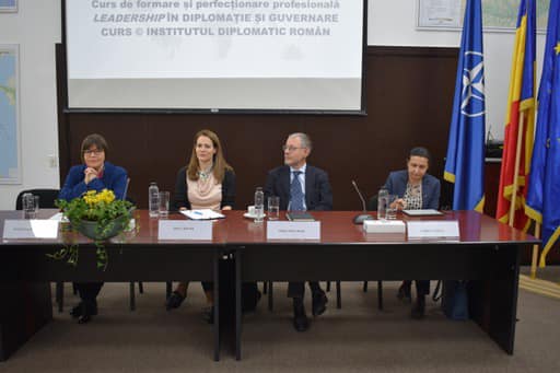 The first speaker – leader par excellence – was Mircea Geoană, Deputy Secretary General of NATO. He addressed the audience with a video message, in which he evoked his experience in leadership structures (in diplomacy, but also other areas of administration and governance), stressing the importance of moral values in gaining and maintaining social trust. This was followed by the presentation of Director General Mădălina Morariu (Human Resources Department, MFA), who advocated the exceptional use of this course both for senior diplomats in the Central Administration and for heads of Romanian missions abroad.